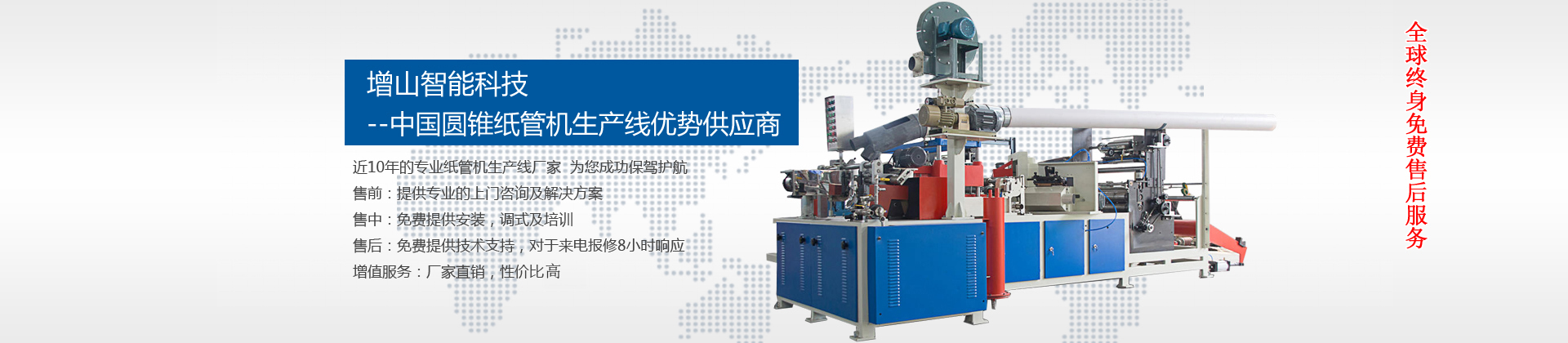 河北增山智能科技有限公司是數控機床、紙管設備、造紙機械、瓦楞紙箱設備、涂布機械的專業制造廠家。1990年與臺灣豪勵公司合資生產紡織用紗管、螺旋紗管,1992年開發推出半自動圓錐紙管、螺旋紙管整…... [查看更多]